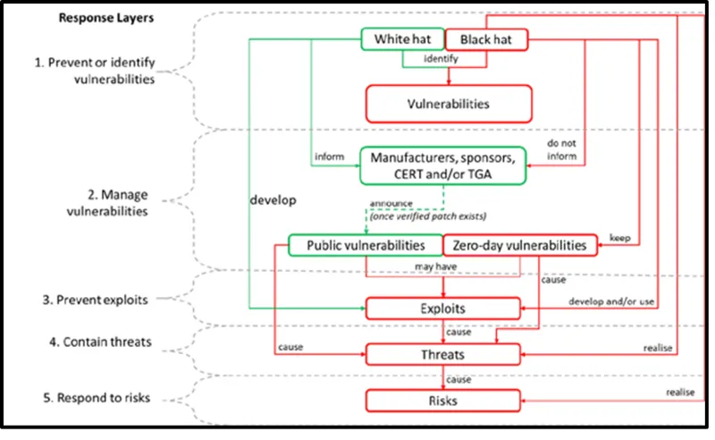 Guidance for manufacturers and sponsors on cyber security of medical devices that include software or electronic components.
