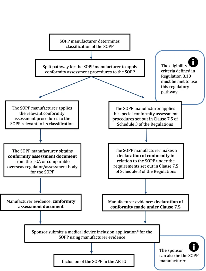 For inclusion in the ARTG, manufacturers have two options to apply conformity assessment procedures to system or procedure packs. This relates to aspects of the manufacturing process and demonstrating that medical devices produced by it are safe and perform as intended. The manufacturer of a system or procedure pack may obtain market authorisation evidence, issued by an independent assessment body or regulator for the system or procedure pack; or use the special conformity assessment procedure set out in clause 7.5 of Schedule 3 of the Therapeutic Goods (Medical Devices) Regulations 2002 (the ‘Regulations’) if they meet the eligibility criteria for ‘medical devices used for a special purpose’ defined in Regulation 3.10.