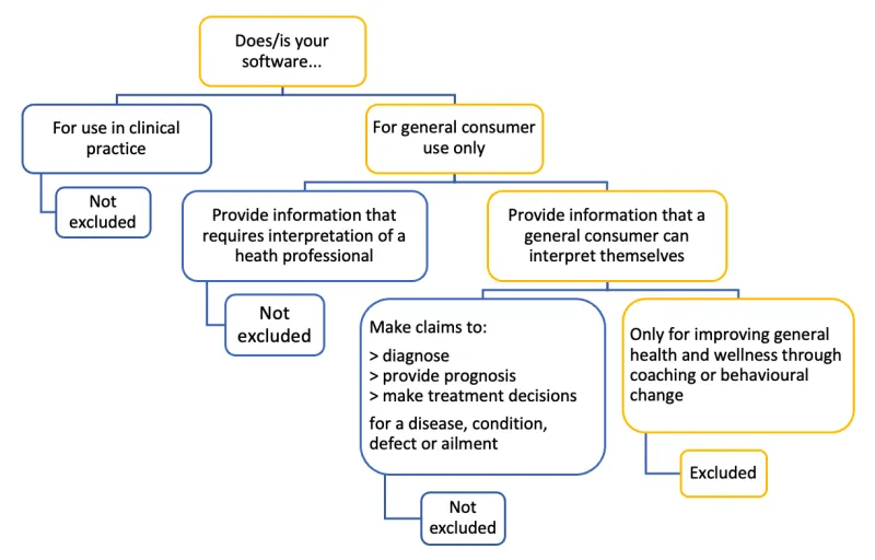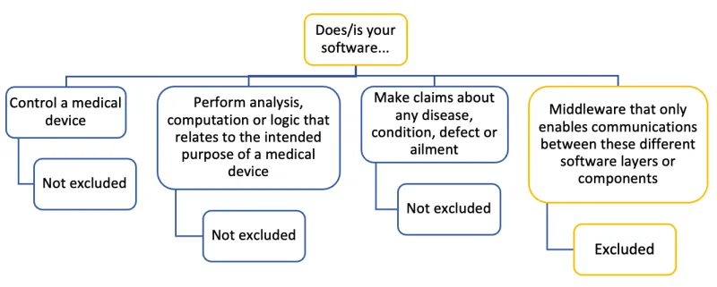 The document steps through each software exclusion in the Therapeutic Goods (Excluded Goods) Determination 2018 (the excluded goods order).