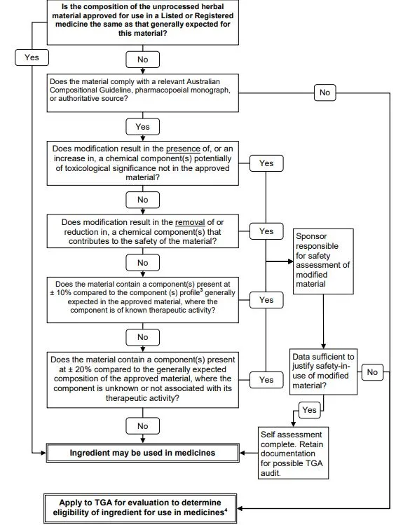 Guidance on the use of modified unprocessed herbal materials in complementary medicines