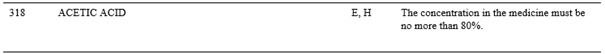 Column 4 specifies requirements applying to the ingredient. The text states that "The concentration in the medicine must be no more than 80%."