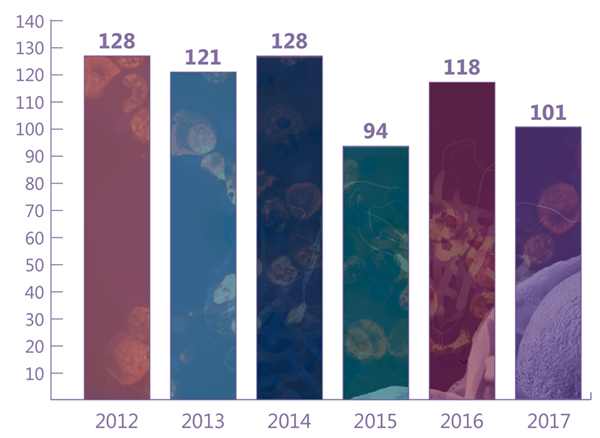 New chemical or biological entity registrations by year