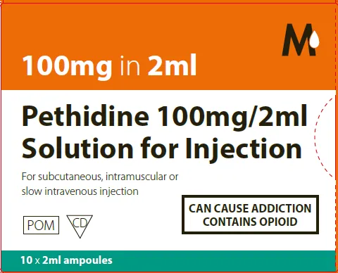 (Approval lapsed 05/03/2021) Pethidine 100mg/2mL Solution for Injection, 2mL ampoule (Martindale)