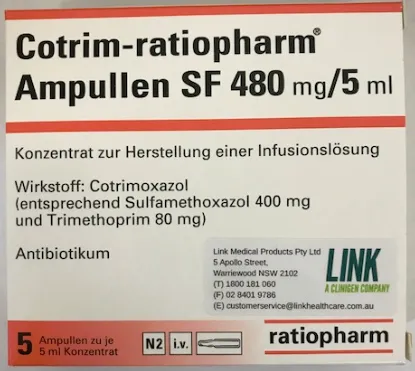 (Approval lapsed) COTRIM-RATIOPHARM 480mg/5mL (sulfamethoxazole 400 mg/trimethoprim 80 mg) 5mL ampoules