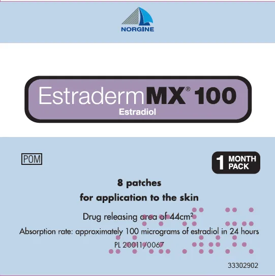 (Approval lapsed) Estraderm MX 100 estradiol 100microgram/24hours transdermal delivery system sachet (Norgine UK)
