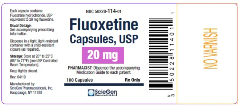 (Approval lapsed) Fluoxetine capsules USP 20mg (ScieGen) 100 capsule bottle