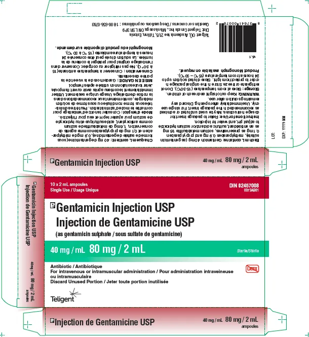 (Approval lapsed) Gentamicin Injection USP 80mg/2mL solution for injection - 10 ampoules