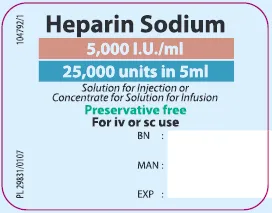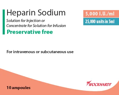 (Approval lapsed) Heparin Sodium (5,000 I.U./ml) 25,000 units in 5ml Solution for Injection or Concentrate for Solution for Infusion (WOCKHARDT)