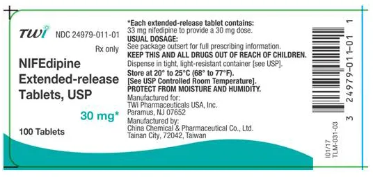 ADDOS XR 30 nifedipine 30mg controlled release tablet blister pack - ARTG 114825