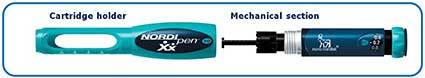 NordiPen is a non-sterile, re-usable injector pen. NordiPen is used with 5 mg, 10 mg and 15 mg Norditropin SimpleXx (somatropin) cartridges. Norditropin SimpleXx is human growth hormone used to treat growth failure in children and growth hormone deficiency in adults. NordiPen can also be used in conjunction with NordiPenMate.
